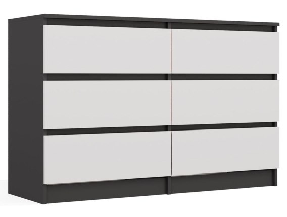 Komoda MALWA M6 to przestronny i stylowy mebel, który doskonale sprawdzi się w sypialni, salonie, pokoju dziecka czy gabinecie. Dzięki 6 pojemnym szufladom zapewnia dużą przestrzeń do przechowywania, ułatwiając organizację ubrań, dokumentów i innych akcesoriów.