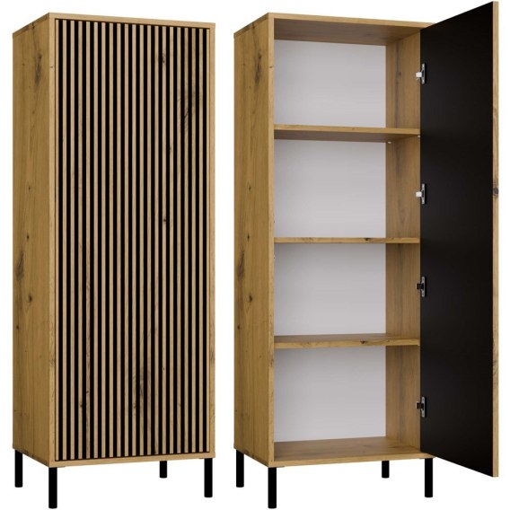 Witryna KAMARO 1DD SLIM ARTISAN to doskonały wybór do salonu, pokoju gościnnego czy gabinetu. Ryflowany front i system TIP-ON nadają jej nowoczesny charakter, a kompaktowe wymiary ułatwiają dopasowanie do mniejszych przestrzeni. Idealna na książki, dekoracje lub zastawę stołową — doda wnętrzu stylu i porządku.