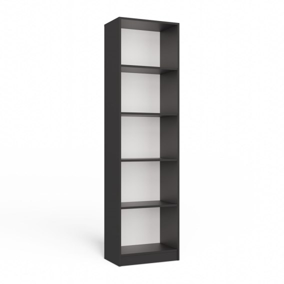 Regał R50 to nowoczesna propozycja do przechowywania książek, dokumentów, zabawek czy dekoracji. Minimalistyczna bryła w eleganckim kolorze antracytu, nadaje wnętrzu nowoczesny i uporządkowany wygląd. Doskonale sprawdzi się zarówno w domowym biurze, salonie, pokoju dziecka, jak i w biblioteczce lub gabinecie.