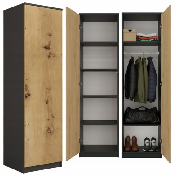 Szafa garderoba 50 cm antracyt dąb artisan półki lub drążek
